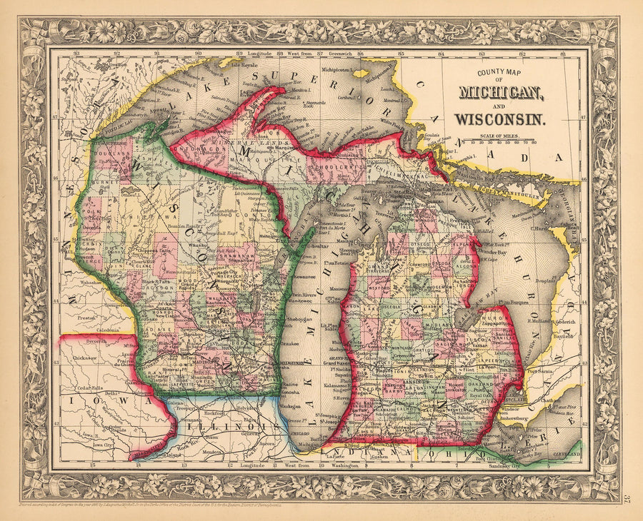 Antique Map of Michigan and Wisconsin : nwcartographic.– New
