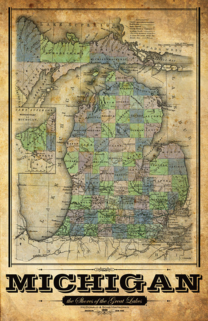 Michigan Vintage Remixed Map – LOST DOG Art & Frame