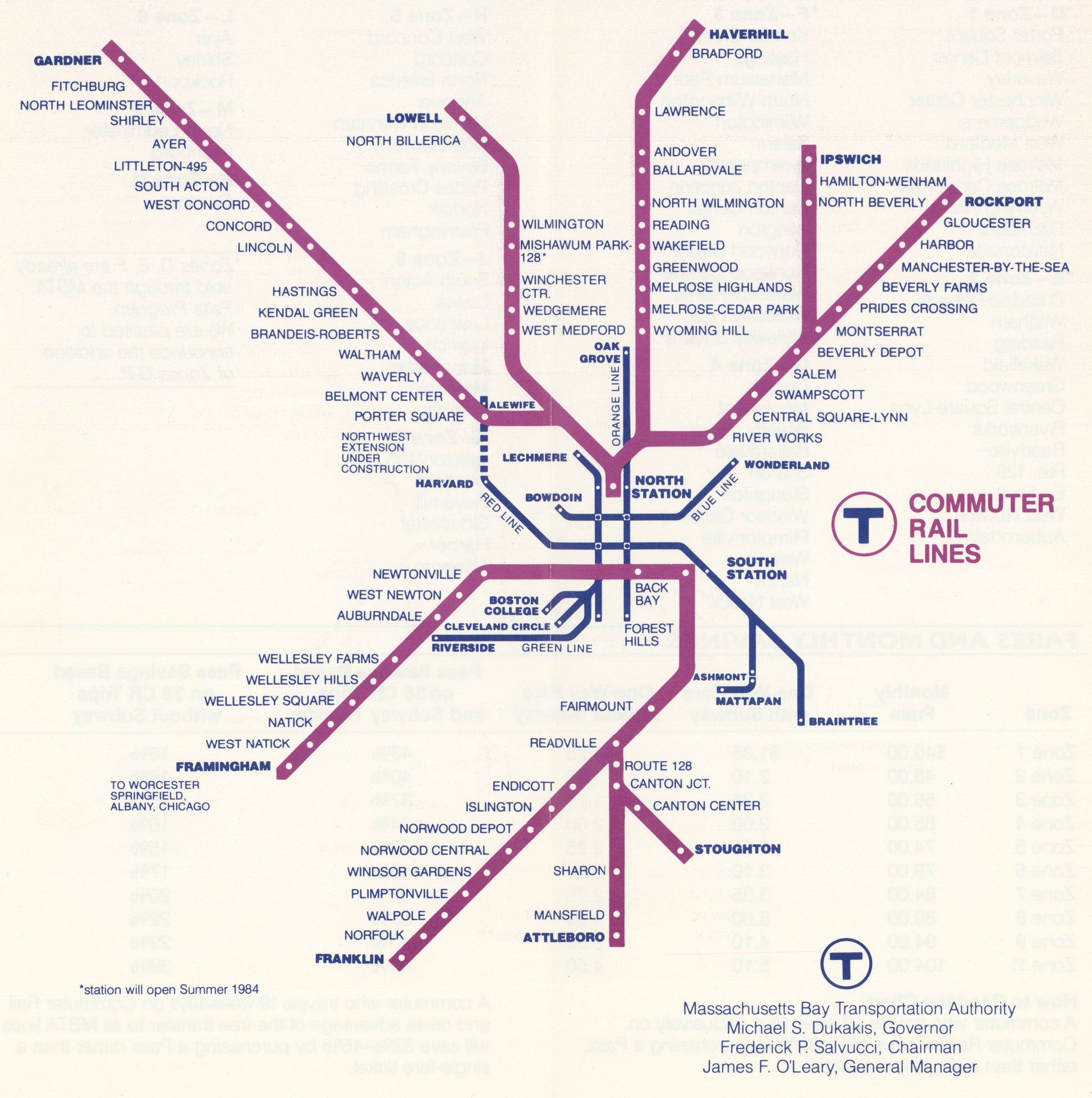 Transit Maps: Historical Map: Boston Commuter Rail Map, Mid 1980s