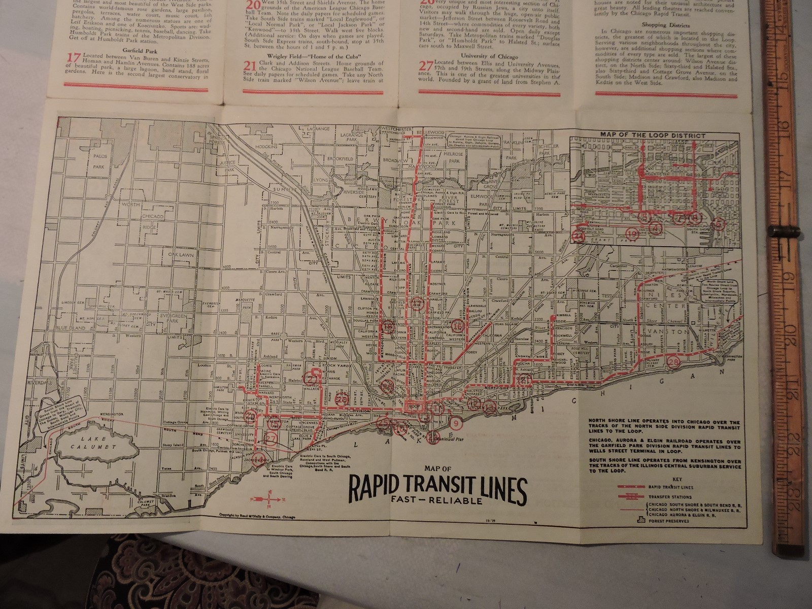 1927 Chicago Rapid Transit Lines Map Brochure Subway Train